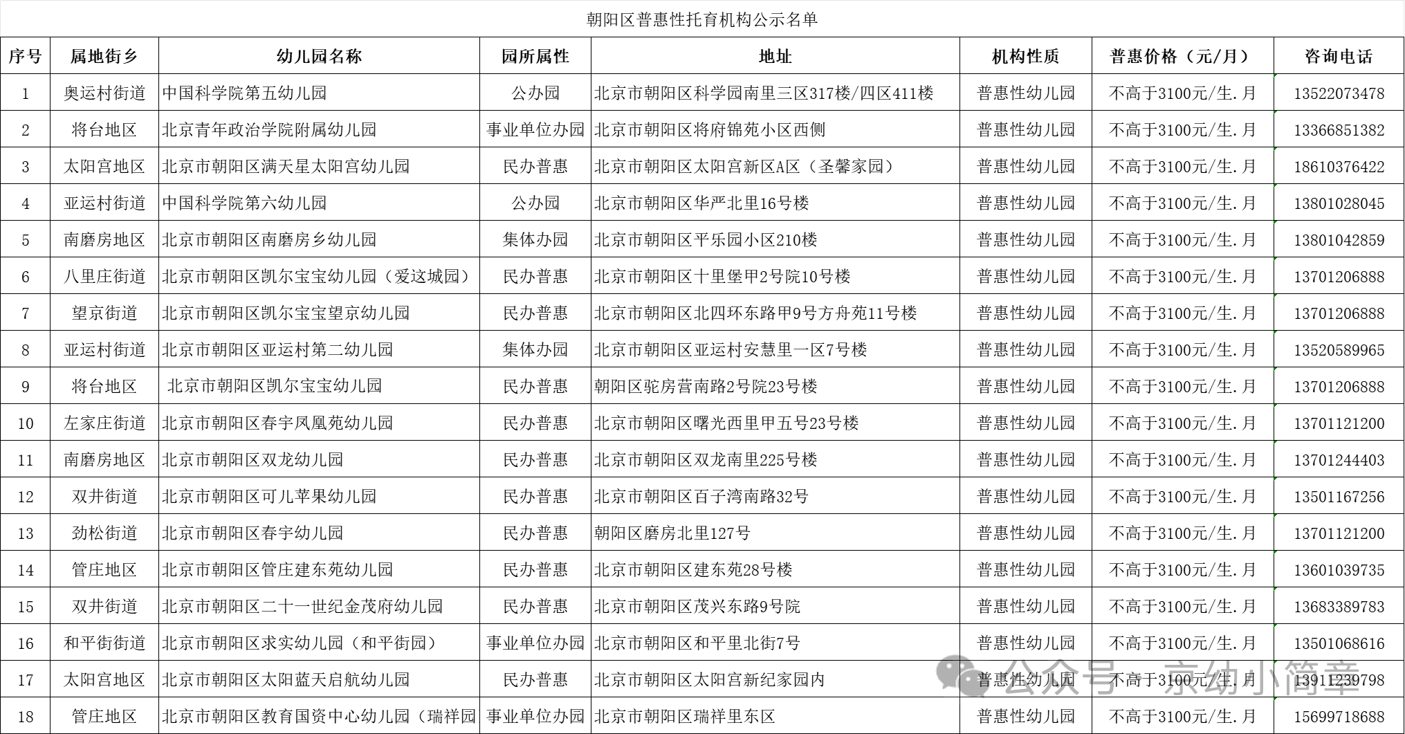 更新!2024年朝阳区普惠托育幼儿园名单!